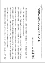 企業・団体のトップ215名の『いま伝えたい!感謝の心』 412~413頁 『感謝し愛すべき大切な人々』、起業から新会社設立まで、支え応援してくれている方々への感謝の気持ちを綴っています。